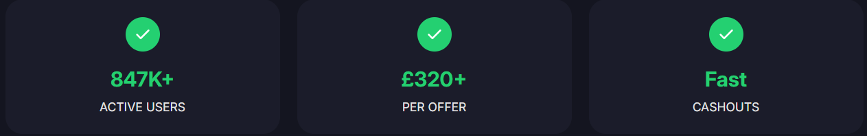 Guadagna fino a £320+ per offerta testando app, giochi e completando sondaggi. Prelievi veloci disponibili!